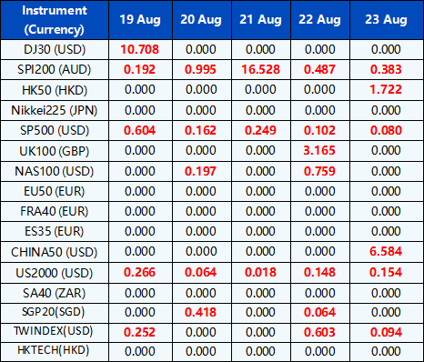 Please note the above data are subject to changes. Please refer to MT4/MT5 for details.