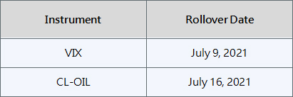 • Positions that are open on the expiration date will be adjusted via a rollover charge or credit to reflect the price difference between the expiring and new contracts.