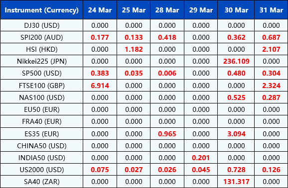 Please note the above data are subject to changes. Please refer to MT4/MT5 for details.