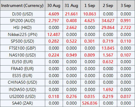 Please note the above data are subject to changes. Please refer to MT4/MT5 for details.