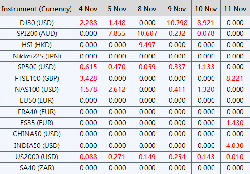 Please be advised that the dividends of the following index CFDs will be adjusted by upcoming ex-dividend dates. The comment for trading index CFDs will be in the following format “Div&<Product Name>&<Net Volume>” which show in the balance after the close of the day before the dividend payment date.