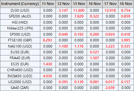 Please be advised that the dividends of the following index CFDs will be adjusted by upcoming ex-dividend dates. The comment for trading index CFDs will be in the following format “Div&<Product Name>&<Net Volume>” which show in the balance after the close of the day before the dividend payment date.
