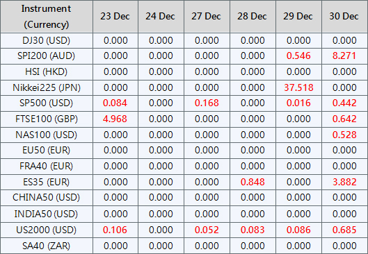 Please be advised that the dividends of the following index CFDs will be adjusted by upcoming ex-dividend dates. The comment for trading index CFDs will be in the following format “Div&<Product Name>&<Net Volume>” which show in the balance after the close of the day before the dividend payment date.