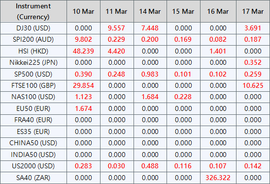 Please be advised that the dividends of the following index CFDs will be adjusted by upcoming ex-dividend dates. The comment for trading index CFDs will be in the following format “Div&<Product Name>&<Net Volume>” which show in the balance after the close of the day before the dividend payment date.