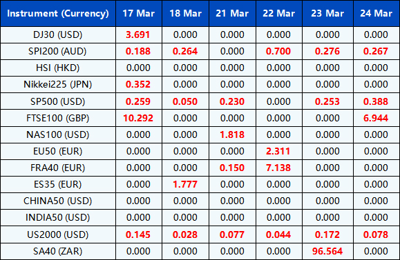 Please note the above data are subject to changes. Please refer to MT4/MT5 for details.
