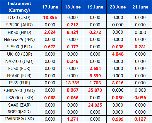Please be advised that the dividends of the following index CFDs will be adjusted by upcoming ex-dividend dates. The comment for trading index CFDs will be in the following format “Div&<Product Name>&<Net Volume>” which show in the balance after the close of the day before the dividend payment date.