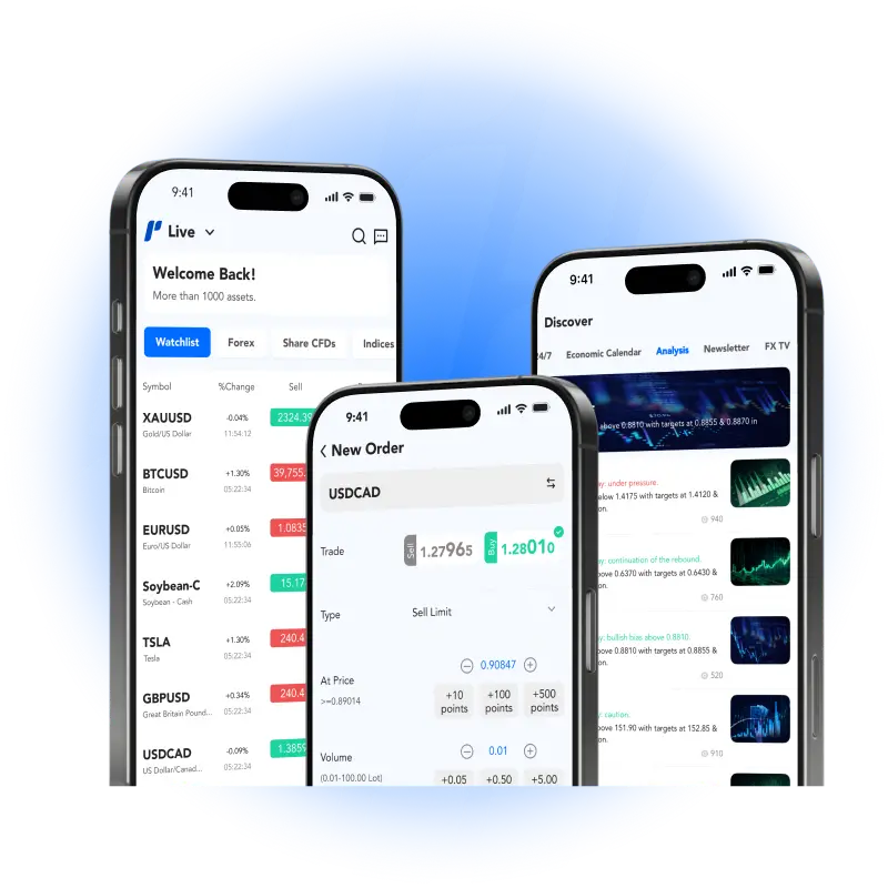 A nossa aplicação foi desenvolvida para ser simples e poderosa — oferecendo funcionalidades completas de trading, ferramentas de gestão de risco e controlo de posição sem falhas, em qualquer lugar e a qualquer momento.